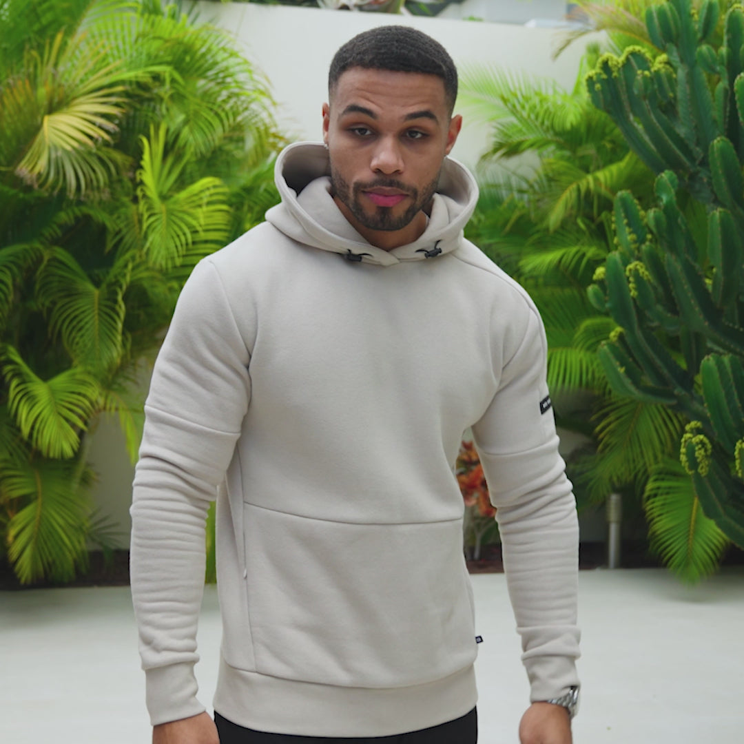 A clay overhead hoodie in our customised slim fit for the perfect athletic silhouette. It comes in a peached brushback fabric for a super soft, quality feel. It has an adjustable toggle hood and concealed zip pickets on the front body cut and sew panel.