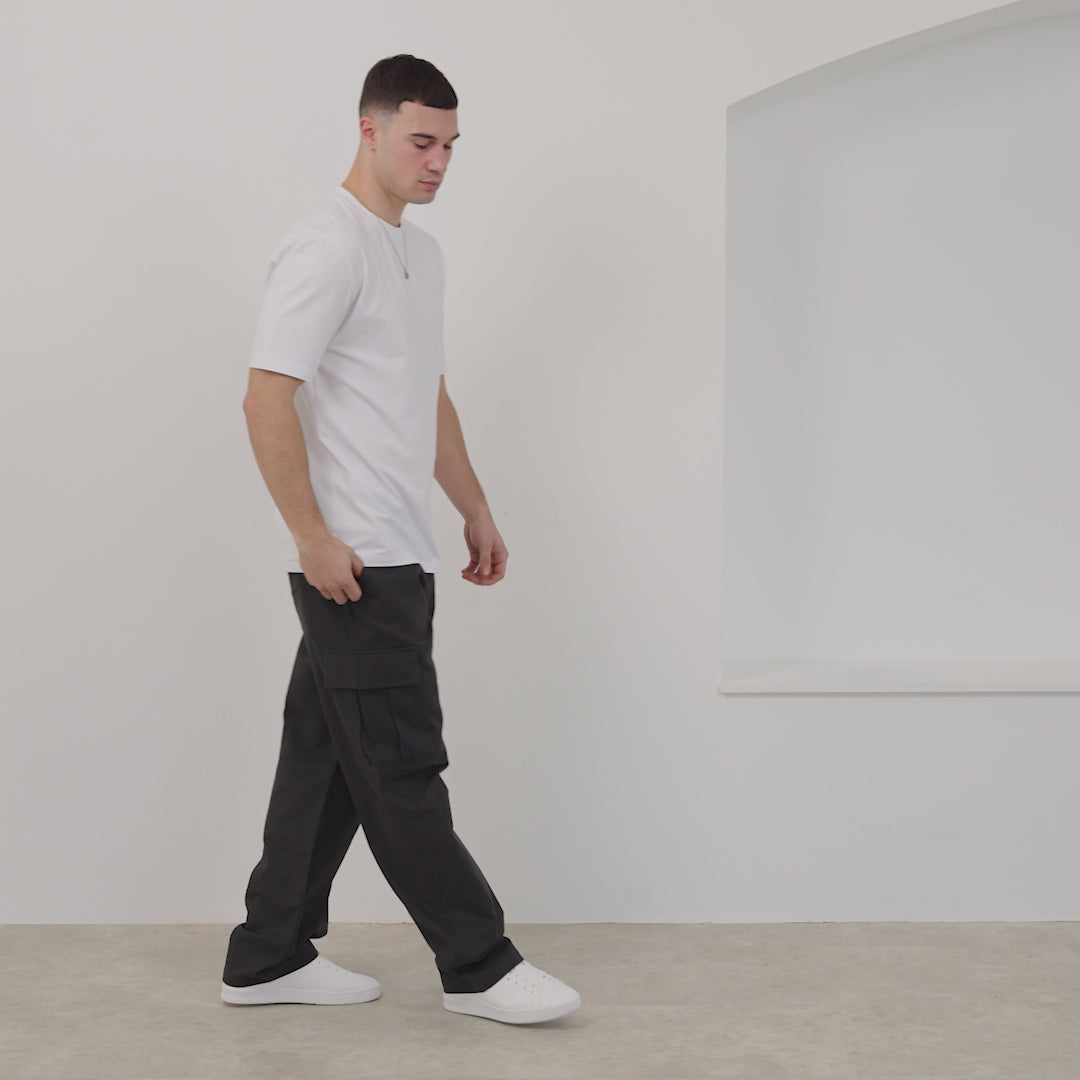 Tjhe Victor Cargo Pants in charcoal are an open hem relaxed fit cargo with 3D pleat cargo pockets, cut and sew panel detail, functional fly front and B33 branding to back. A great option to dress up and down.
